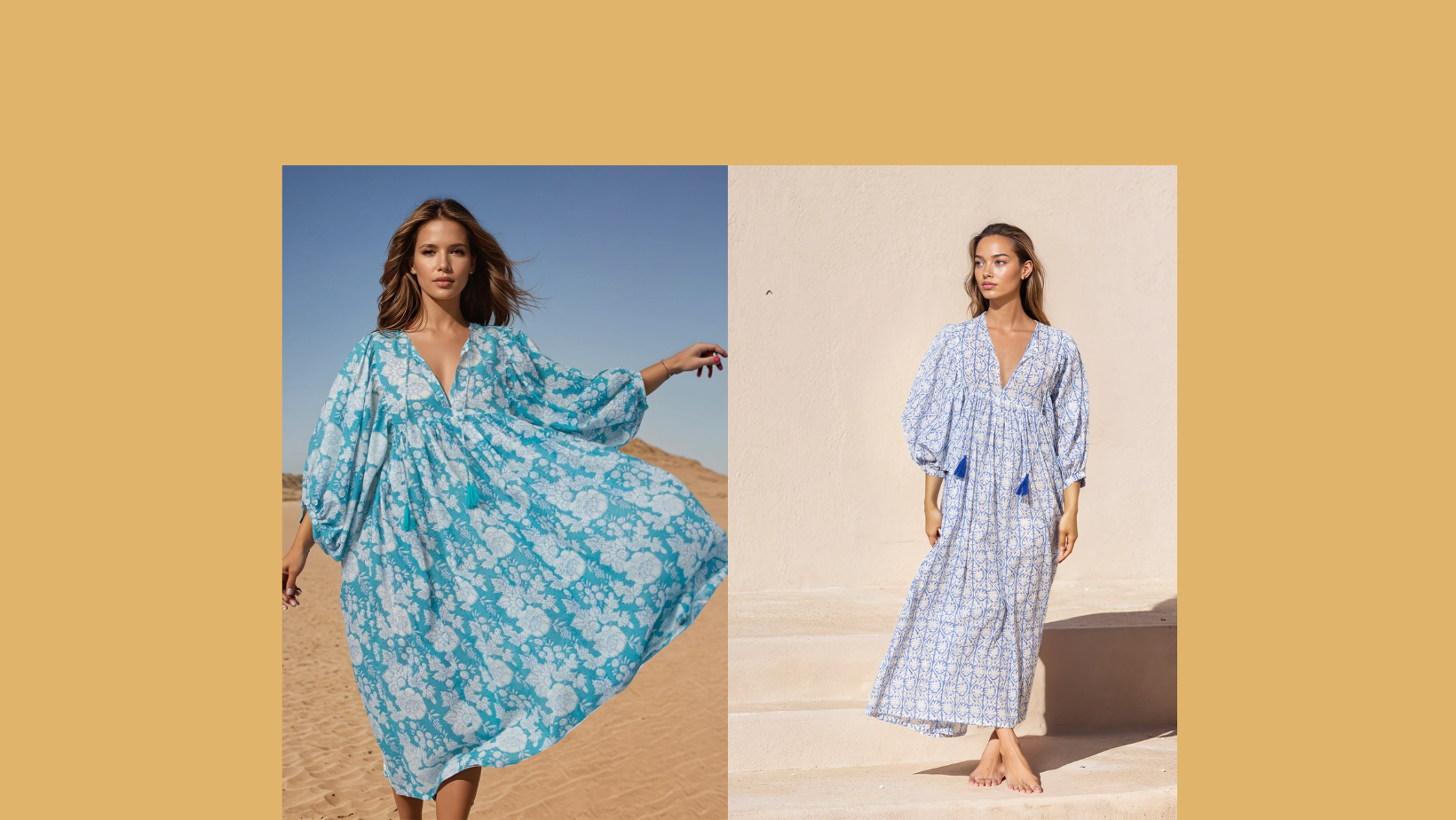 Jedes Kleid ist ein einzigartiges Kunstwerk, das von erfahrenen Kunsthandwerkern in traditioneller indischer Blockdrucktechnik individuell handgefertigt wird.